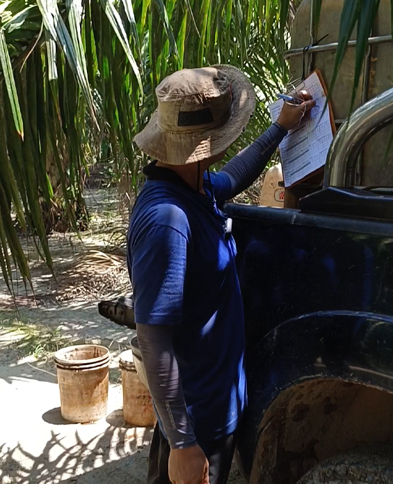 7. 在完成喷洒每泵水后,团队将仔细记录泵的使用次数在检查表上,以便于总泵数的准确计算。