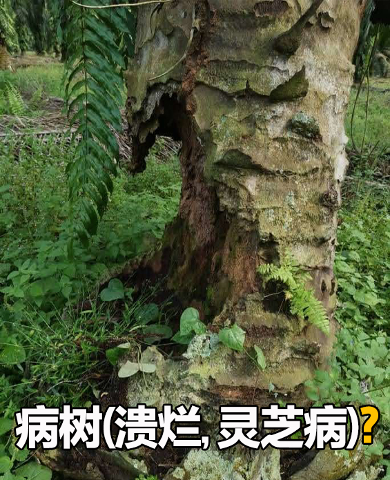 5. 一些已经脱壳的油棕树,我们的团队将会喷洒在已经脱壳的树身部分。