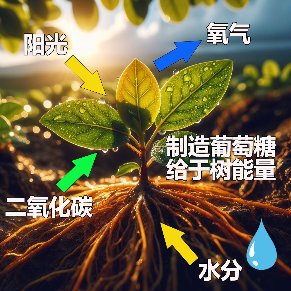 3.) 葡萄糖跟有机物质和肥料,如 N 和 P 结合才能形成植物所需的营养。