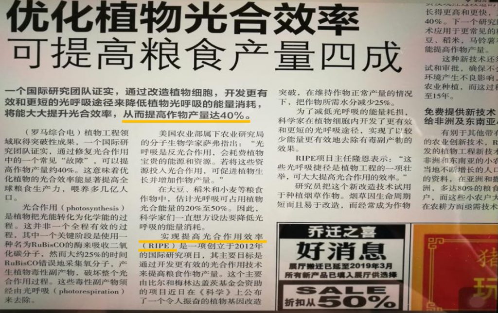 微软联合创始人、亿万富翁比尔·盖茨(Bill Gates)旗下慈善基金会日前推出了名为“实现提高光合作用效率”,该项目通过加速光合作用、适应光照条件和研究植物代谢过程,可以增加作物产量(参考以下的早报的报道)。这一项目可对发展食品安全产生带来帮助,特别是在气候变化给粮食供应带来的压力。